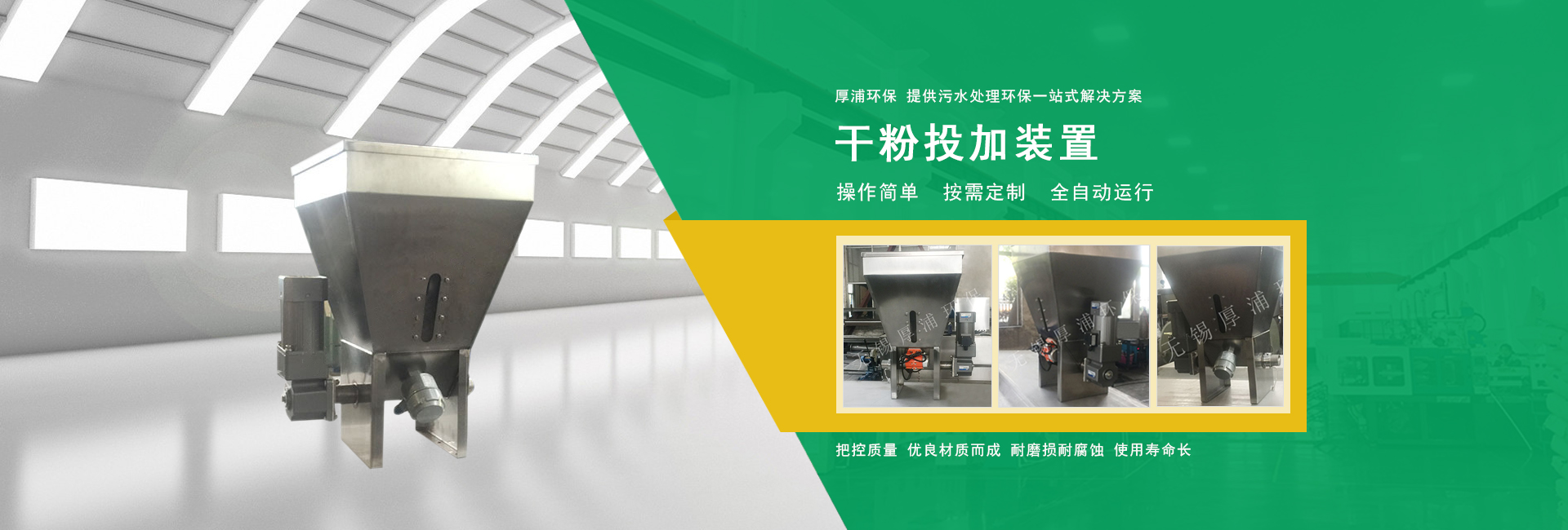 無(wú)錫厚浦環(huán)保科技有限公司專業(yè)生產(chǎn)干粉投加/在線稀釋裝置 網(wǎng)站建設(shè):無(wú)錫網(wǎng)科 備案號(hào):蘇ICP備14012459號(hào)-6 蘇公網(wǎng)安備32028202232136號(hào)